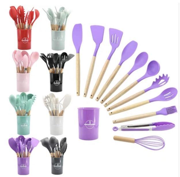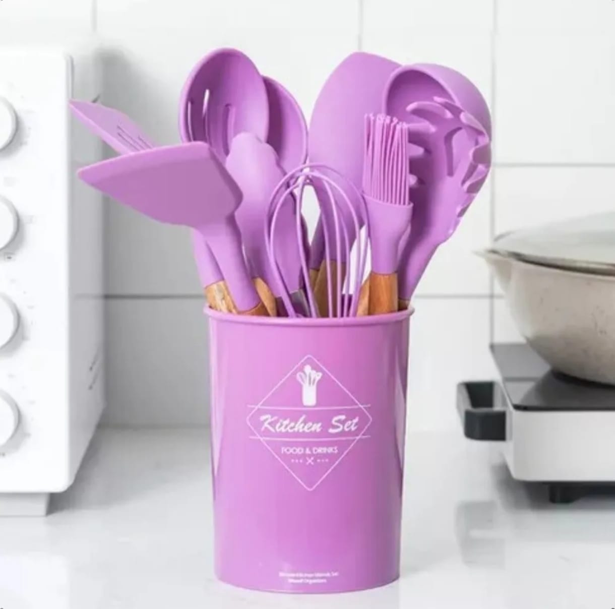 Dale un toque moderno, delicado y profesional a tu cocina con este hermoso set de utensilios en silicona de alta calidad y mangos de madera natural. Su tono lavanda aporta un estilo único, mientras que su diseño resistente y funcional te permite cocinar con total comodidad y seguridad.